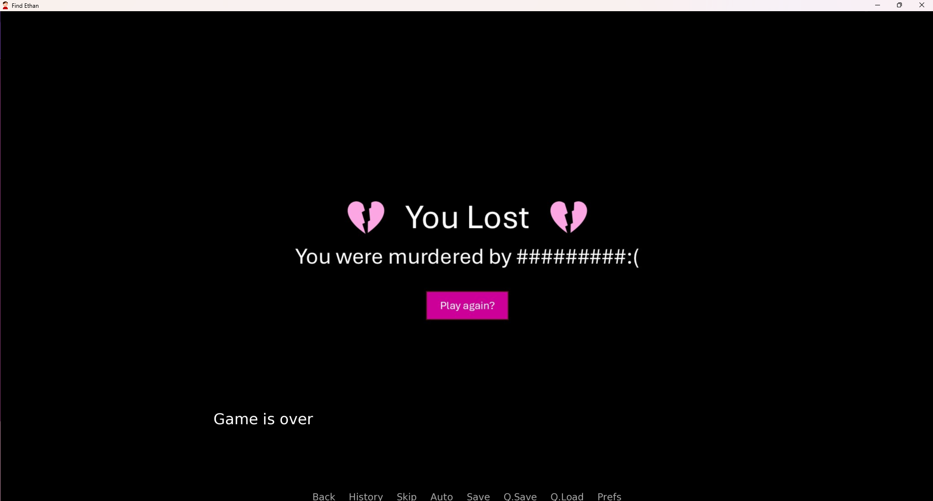 Find Ethan is a branching psychological-horror visual novel and the first ever publicly released game by NOTCHESS Games - made by Francesca (Chess) Hellmuth as a solo developer